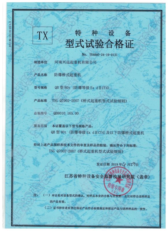 河南興遠起重機有限公司始建于2003年,公司座落于全國起重機機械生產基地之稱的長垣工業園區。公司擁有完善的質量保證體系,推行ISO9001質量管理模式,管理機構設有經理辦公室、技術部、信息部、質檢部、公司辦、財務部、人力資源部、生產部、供應部、銷售部、投標辦、售后服務部等部門。公司實行全員責任制,自上而下,層層建立了質量崗位責任制,職責清楚,分工明確,質保體系運行正常。并在全國各地設立了直屬銷售或代理銷售服務網點。公司集設計、研發、制造通用橋、門式起重機,歐式起重機,路橋起重機,旋臂式起重機,平衡吊,電動葫蘆及多種規格起重機配件。產品銷往全國各地,部分產品出口至多個國家,全力打造起重機產品的制作企業,滿足不同市場、多種用途的需要。多年來,憑借嚴格管理制度、雄厚技術力量和多項生產設備,依著“以管理興企業,以質量闖市場,以信譽贏客戶,以利稅報國家”的宗旨;依著“優良的產品,良好的機制,用心的服務”的態度竭力發展“興遠”品牌。謙誠的“興遠”人愿與您攜手并肩、共同駕馭市場經濟的巨輪,在新世界的曙光中斬浪前進,搏擊遠航!